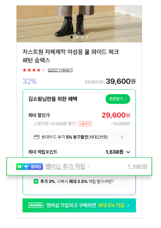 아래와 같이 네이버페이+ 아이콘이 붙어 있어야 멤버십 추가적립혜택이 적용됩니다.