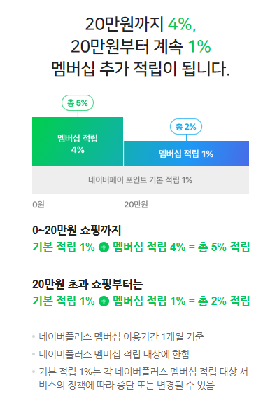 월 0~20만원 쇼핑까지, 기본적립 1%+멤버십 적립 4% = 5% 적립